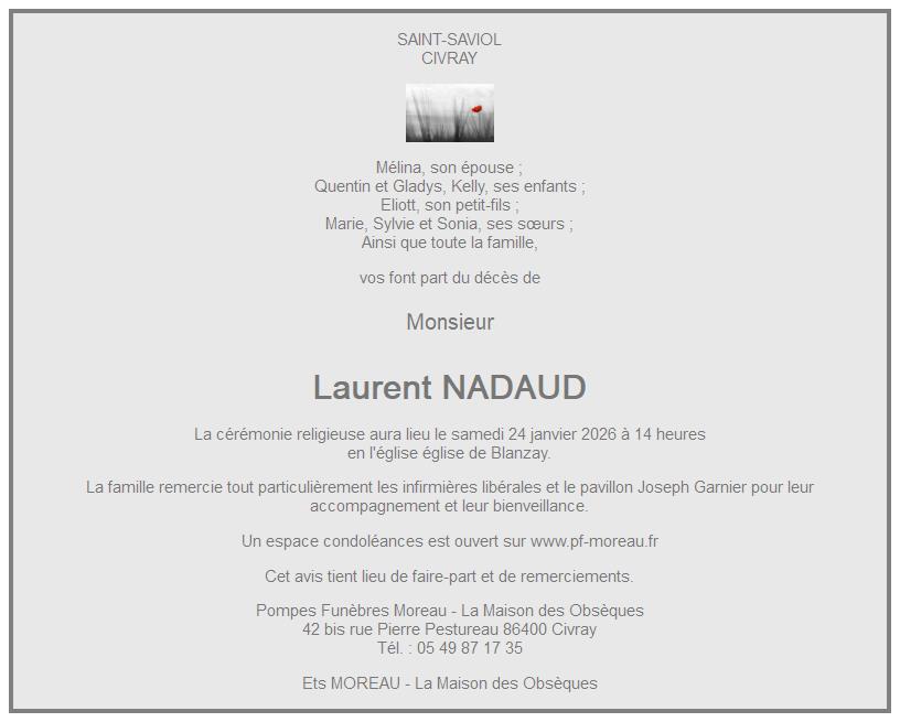 Cet espace « condoléances » est dédié à la mémoire de Monsieur Laurent NADAUD.