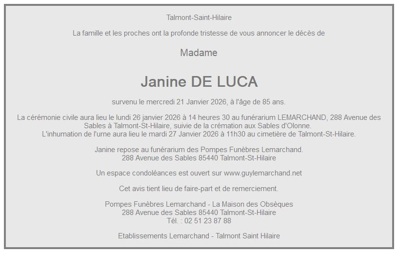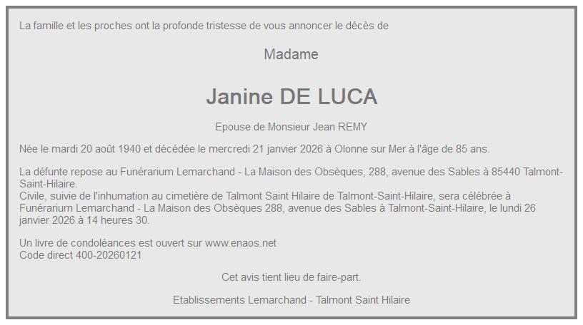 de Madame Janine REMY née DE LUCA