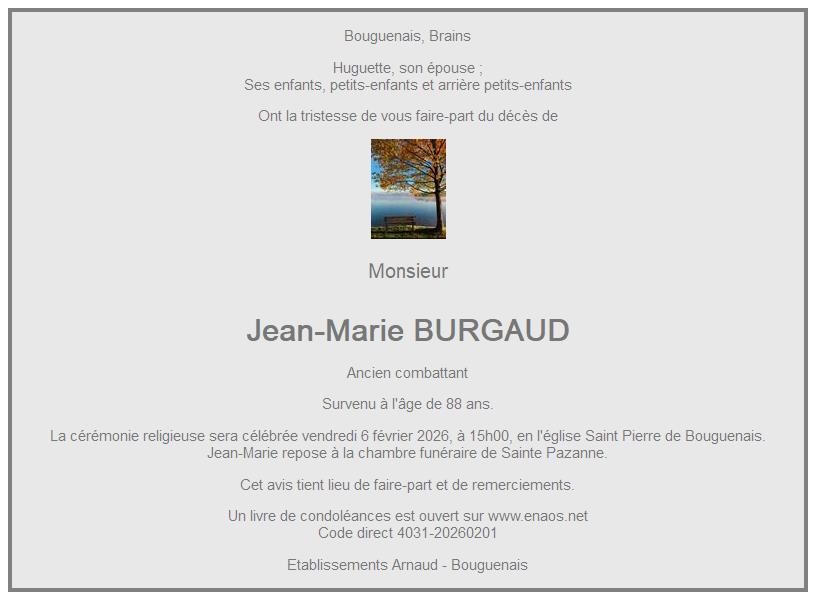 Cet espace « condoléances » est dédié à la mémoire de Monsieur Jean-Marie BURGAUD.