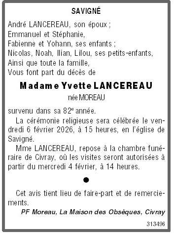 de Madame Yvette LANCEREAU née MOREAU