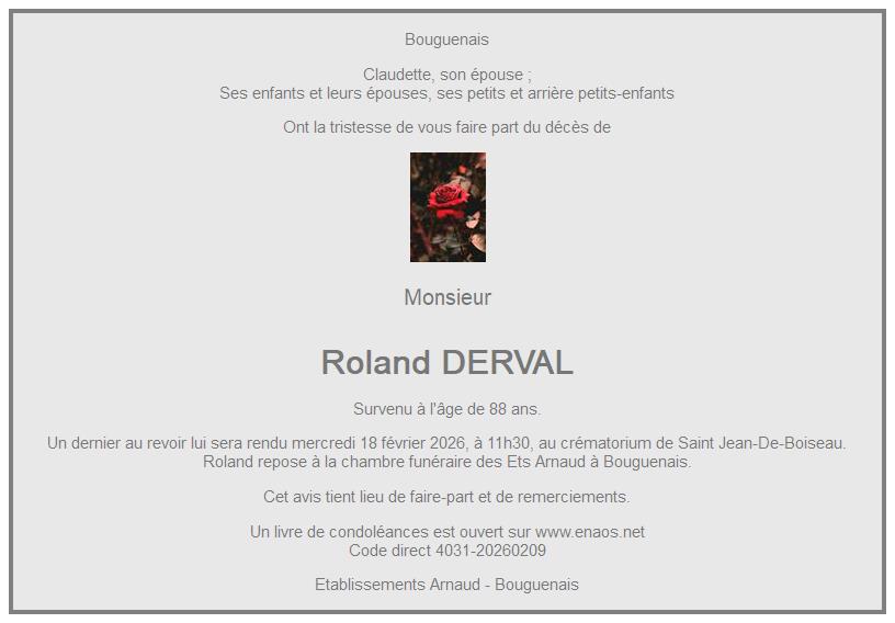 Cet espace « condoléances » est dédié à la mémoire de Monsieur Roland DERVAL.