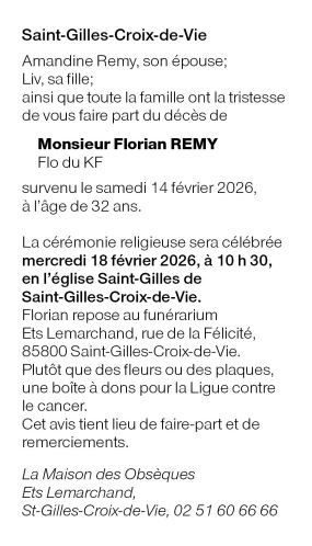 Cet espace « condoléances » est dédié à la mémoire de Monsieur Florian REMY.