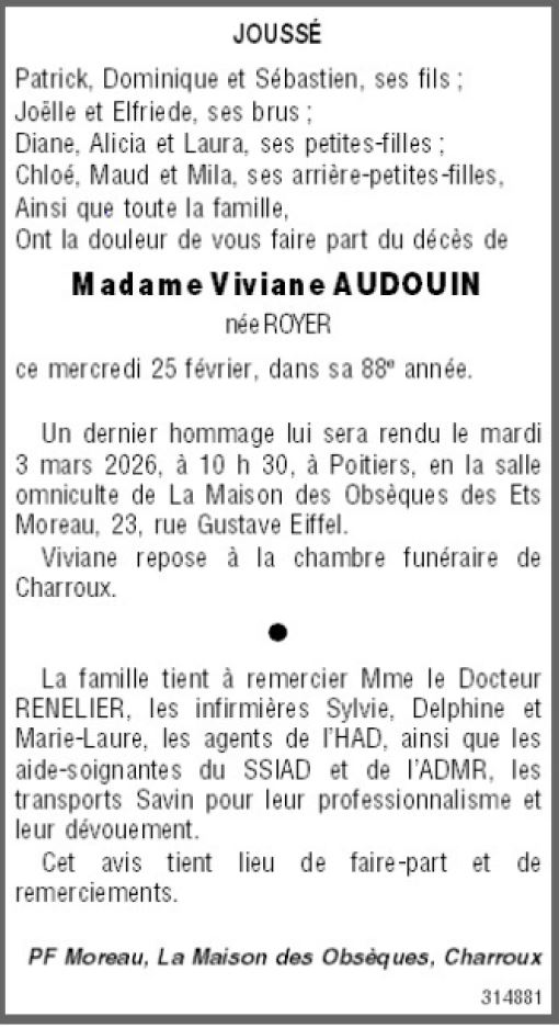 de Madame Viviane AUDOUIN née ROYER