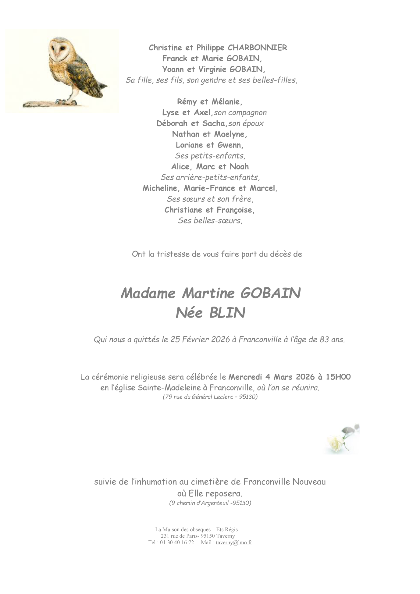 de Madame Martine GOBAIN née BLIN