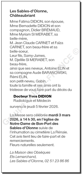 Cet espace « condoléances » est dédié à la mémoire de Monsieur Yves DIDION.