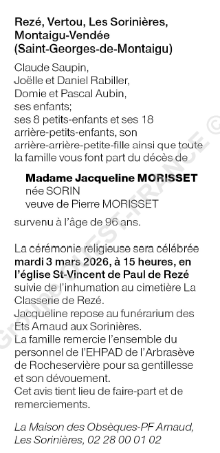 de Madame Jacqueline MORISSET née SORIN