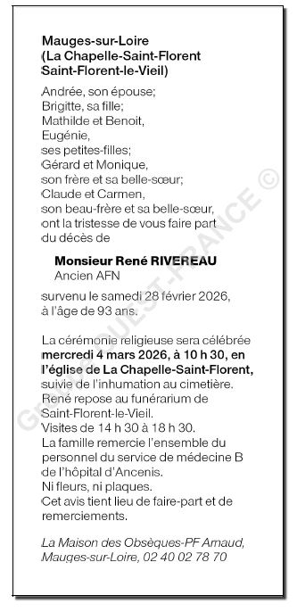 Cet espace « condoléances » est dédié à la mémoire de Monsieur René RIVEREAU.