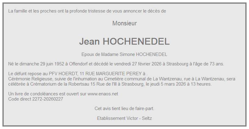 de Monsieur Jean Charles HOCHENEDEL