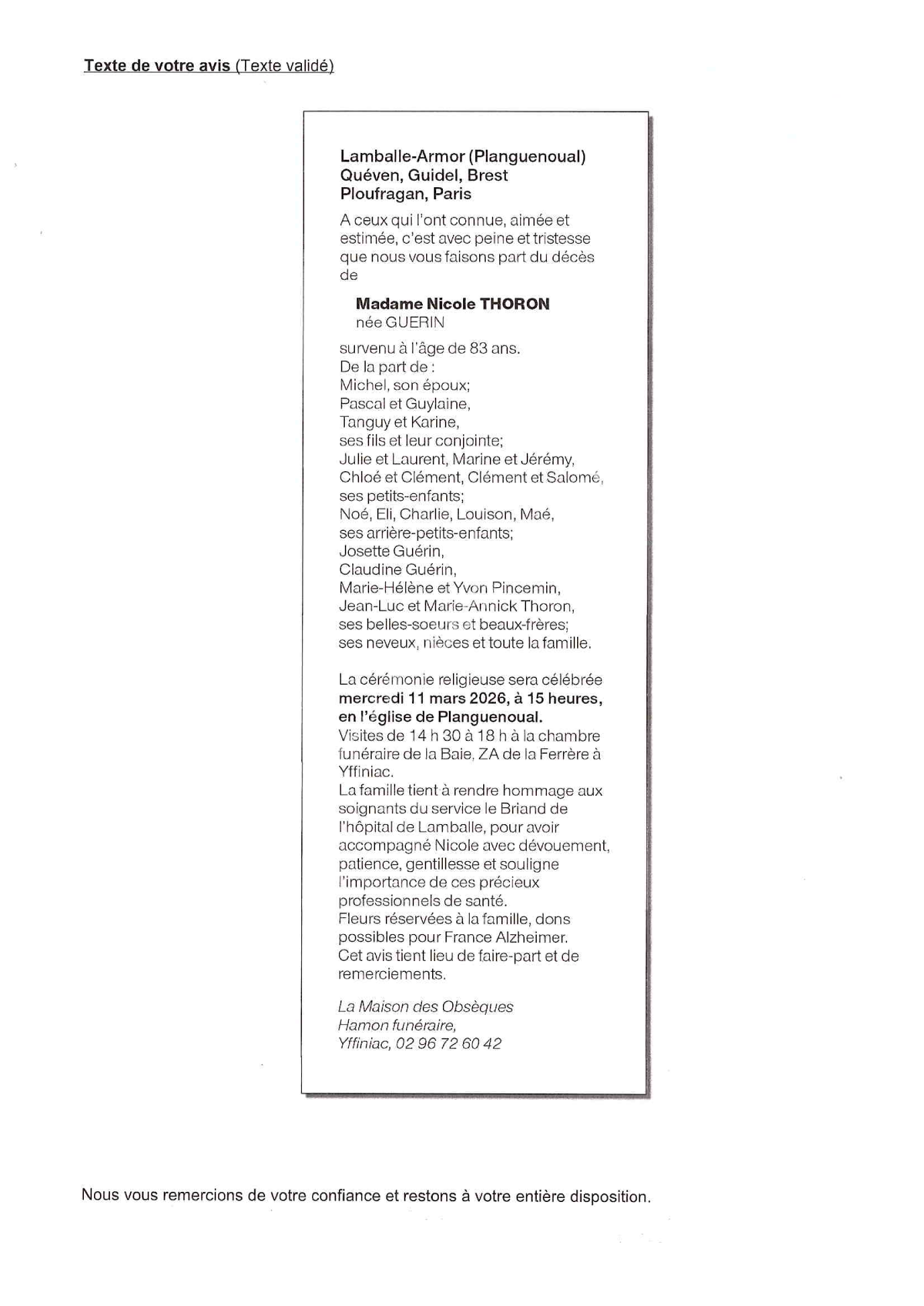 de Madame Nicole THORON née GUERIN