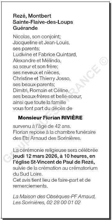 Cet espace « condoléances » est dédié à la mémoire de Monsieur Florian RIVIERE.
