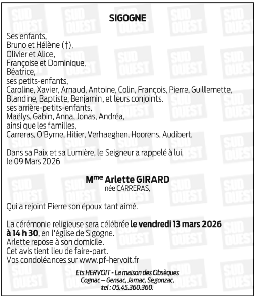 de Madame Arlette GIRARD née CARRERAS