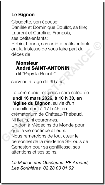 de Monsieur André SAINT-ANTONIN