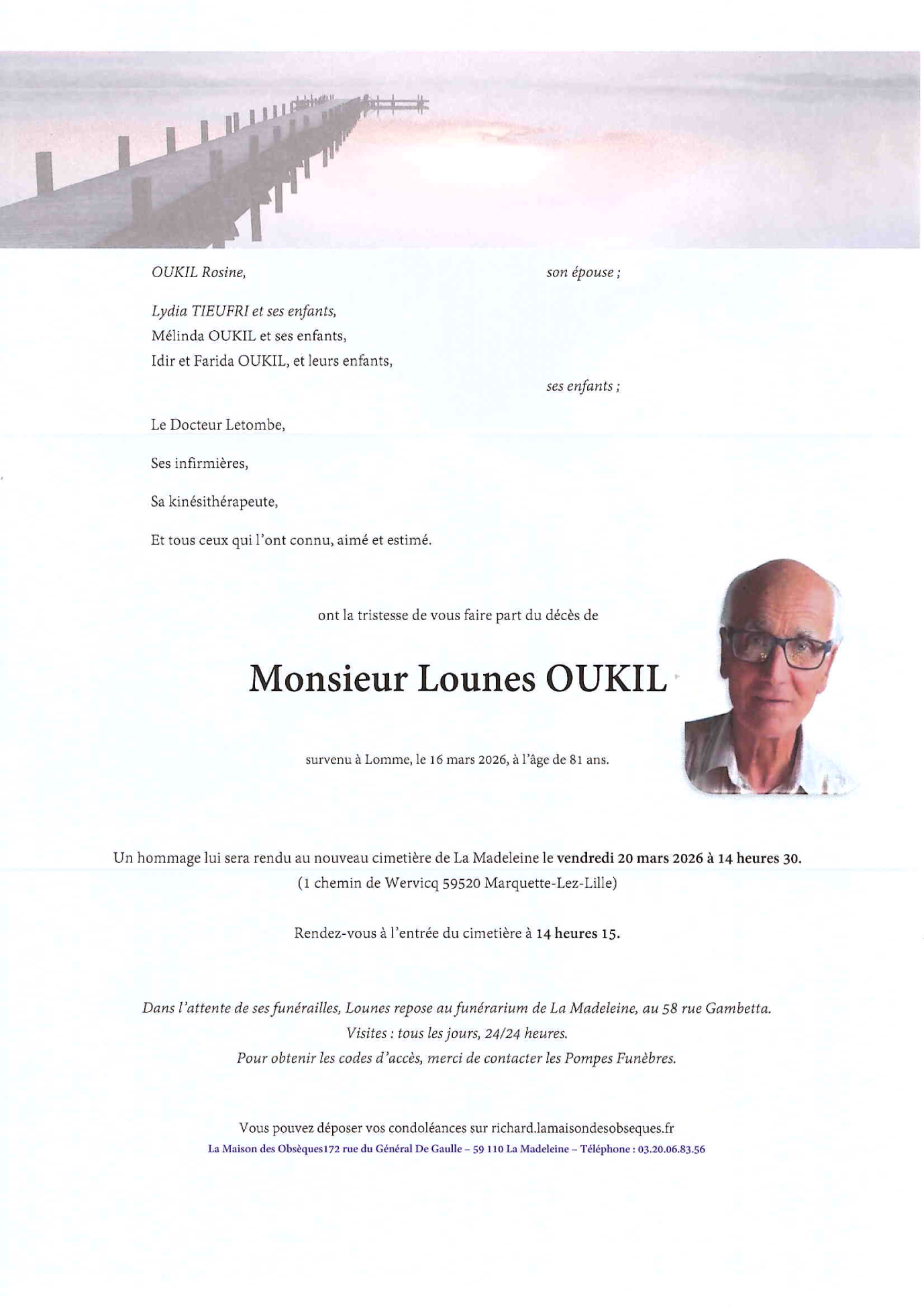 de Monsieur Lounes OUKIL