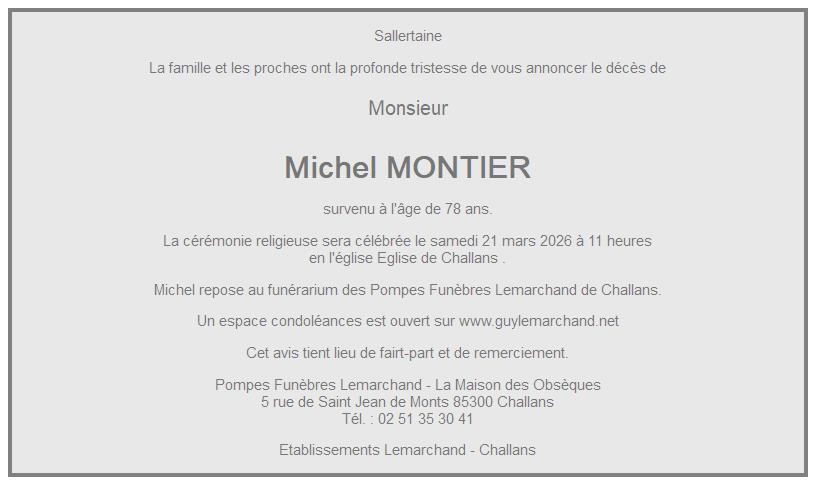 Cet espace « condoléances » est dédié à la mémoire de Monsieur Michel MONTIER.