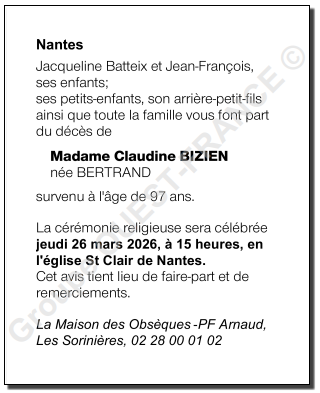 de Madame Claudine BIZIEN née BERTRAND