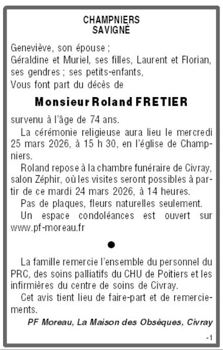 Cet espace « condoléances » est dédié à la mémoire de Monsieur Roland FRETIER.
