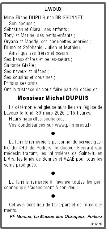 Cet espace « condoléances » est dédié à la mémoire de Monsieur Michel DUPUIS.