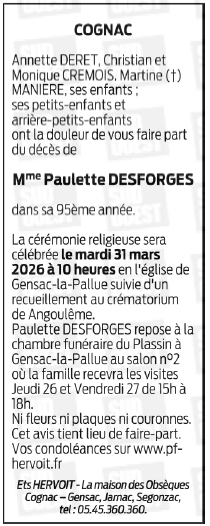 de Madame Paulette DESFORGES
