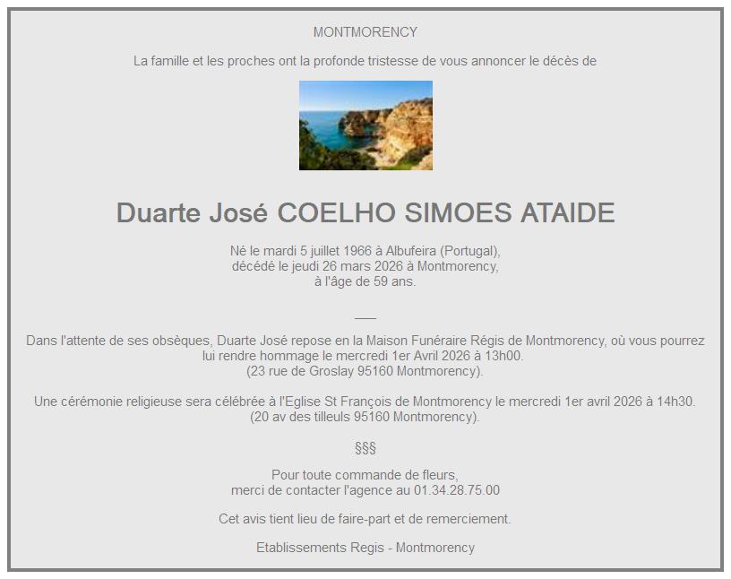 Cet espace « condoléances » est dédié à la mémoire de Monsieur Duarte José COELHO SIMOES ATAIDE.