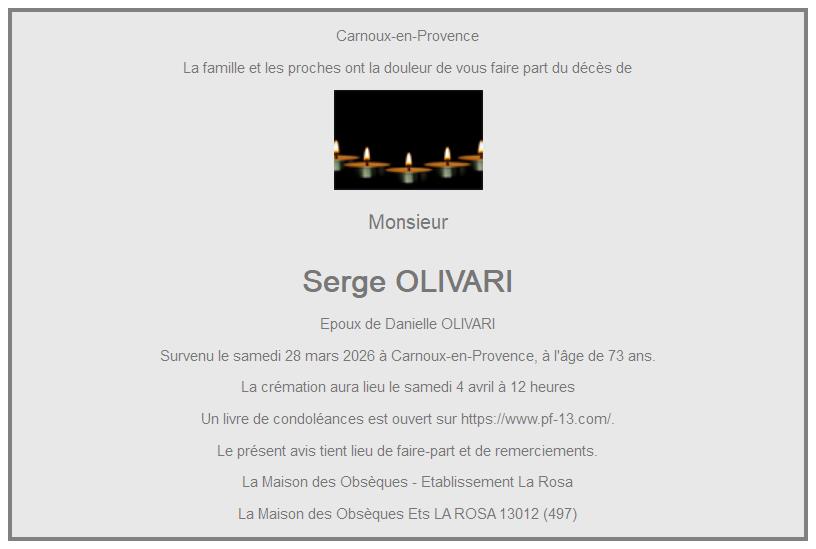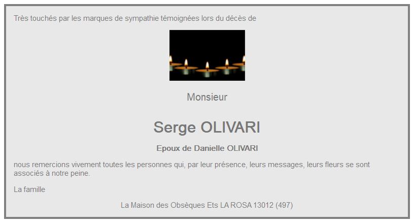 Cet espace « condoléances » est dédié à la mémoire de Monsieur Serge OLIVARI.