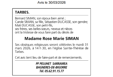 Décédée à Tarbes (65000) le vendredi 27 mars 2026