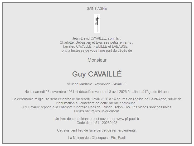 Cet espace « condoléances » est dédié à la mémoire de Monsieur Guy CAVAILLÉ.