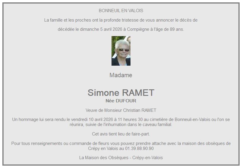 de Madame Simone RAMET née DUFOUR