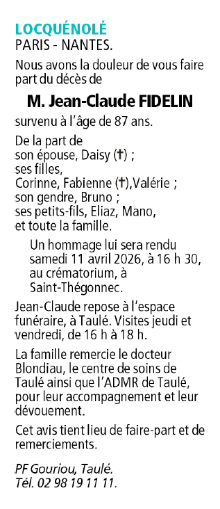 Cet espace « condoléances » est dédié à la mémoire de Monsieur Jean Claude FIDELIN.