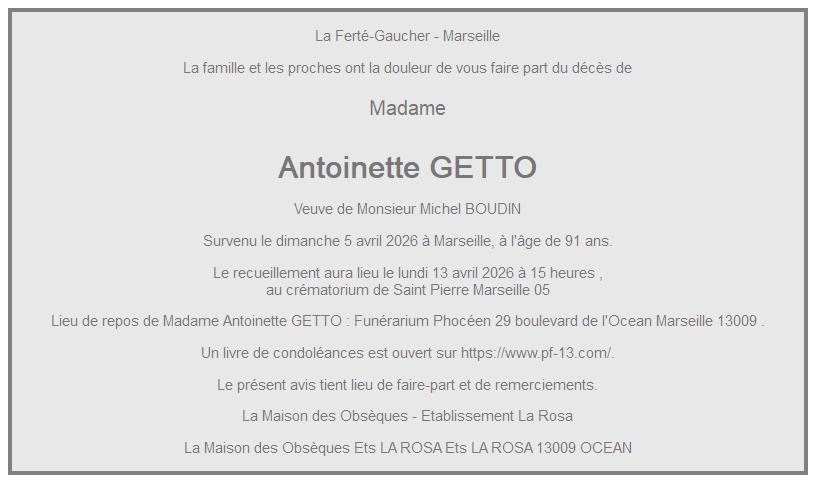 de Madame Antoinette BOUDIN née GETTO