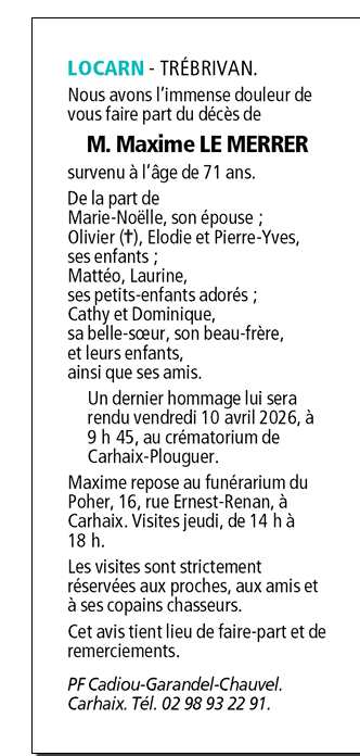 Cet espace « condoléances » est dédié à la mémoire de Monsieur Maxime LE MERRER.