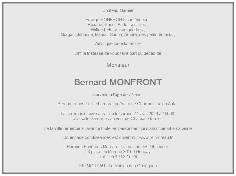 de Monsieur Bernard MONFRONT
