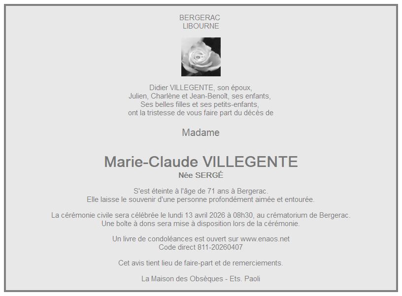 de Madame Marie-Claude VILLEGENTE née SERGÉ