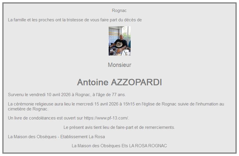 Cet espace « condoléances » est dédié à la mémoire de Monsieur Antoine AZZOPARDI.