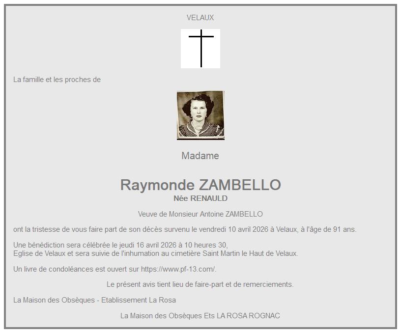 de Madame Raymonde ZAMBELLO née RENAULD