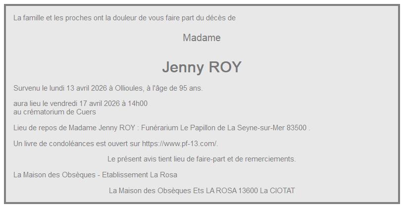 de Madame Jenny ROY