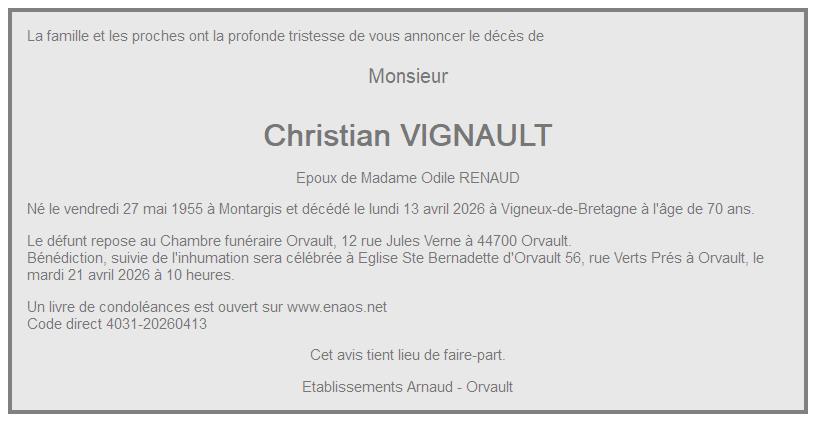 Cet espace « condoléances » est dédié à la mémoire de Monsieur Christian VIGNAULT.