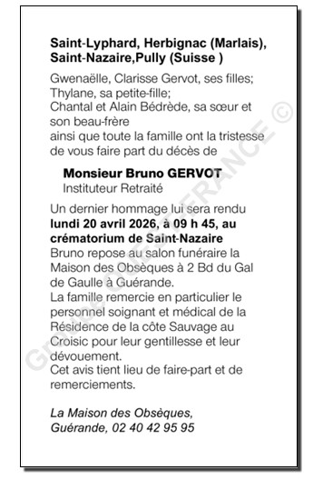 Cet espace « condoléances » est dédié à la mémoire de Monsieur Bruno GERVOT.
