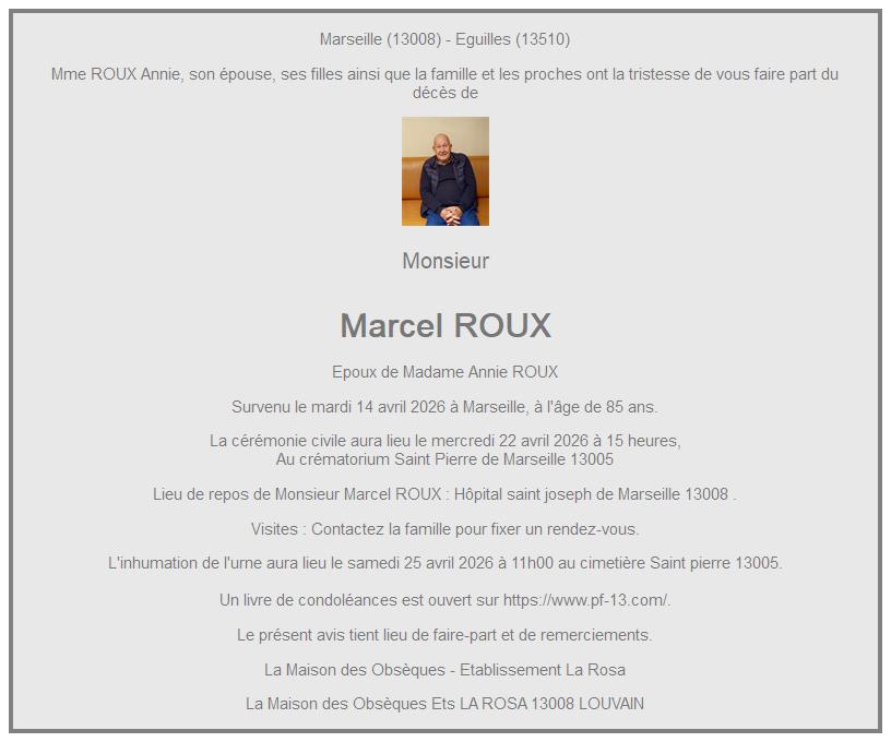 de Monsieur Marcel ROUX