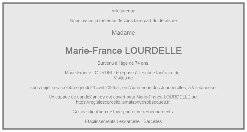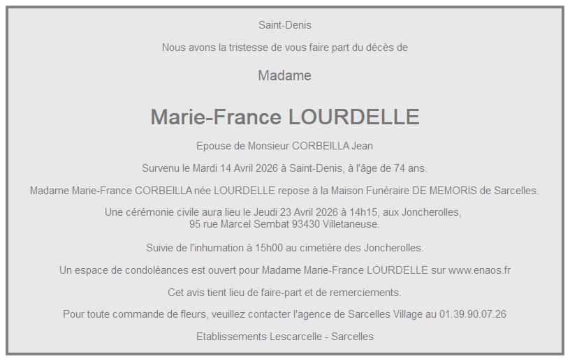 de Madame Marie-France CORBEILLA née LOURDELLE