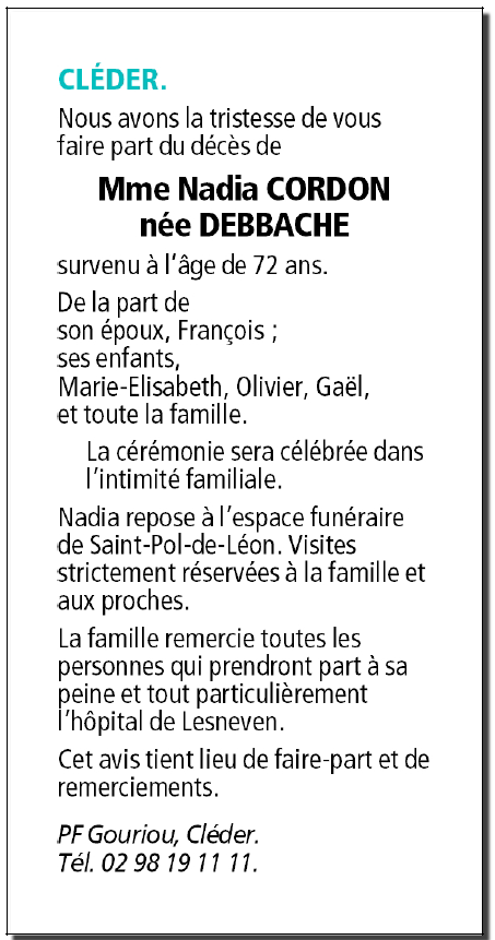 de Madame Nadia CORDON née DEBBACHE