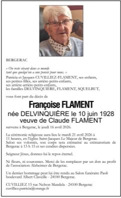 de Madame Françoise FLAMENT née DELVINQUIERE