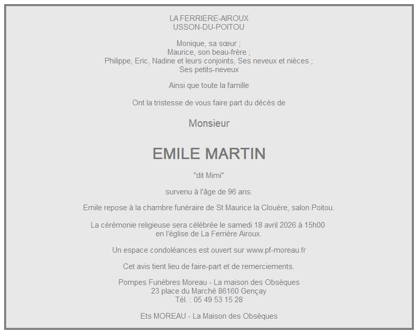 de Monsieur EMILE MARTIN