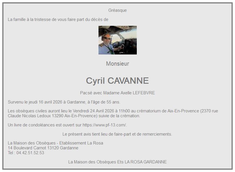 Cet espace « condoléances » est dédié à la mémoire de Monsieur Cyril CAVANNE.