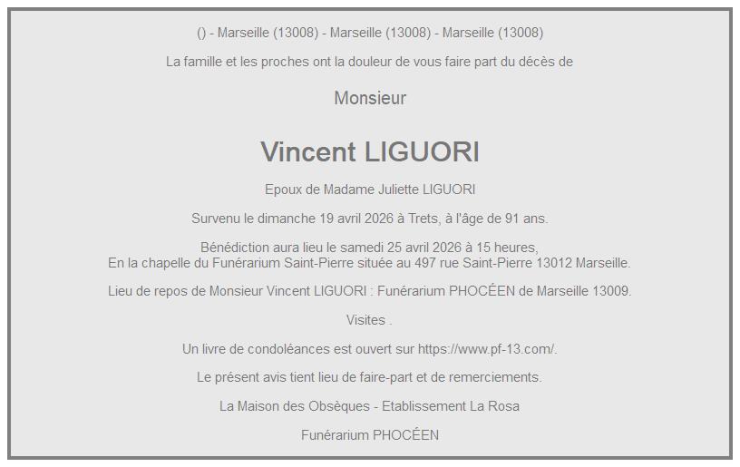 Cet espace « condoléances » est dédié à la mémoire de Monsieur Vincent LIGUORI.