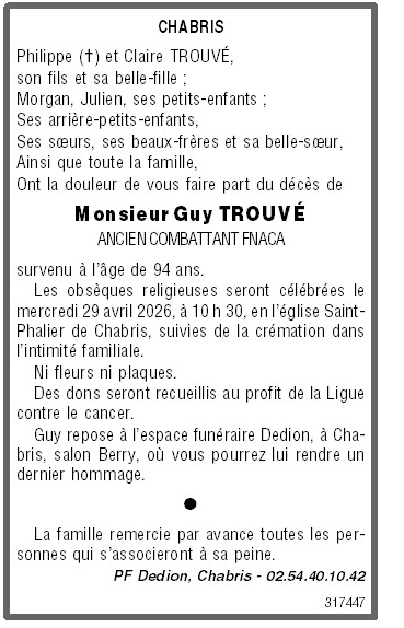 Cet espace « condoléances » est dédié à la mémoire de Monsieur Guy TROUVÉ.