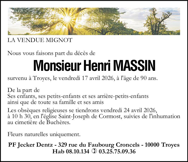 Cet espace « condoléances » est dédié à la mémoire de Monsieur Henri MASSIN.